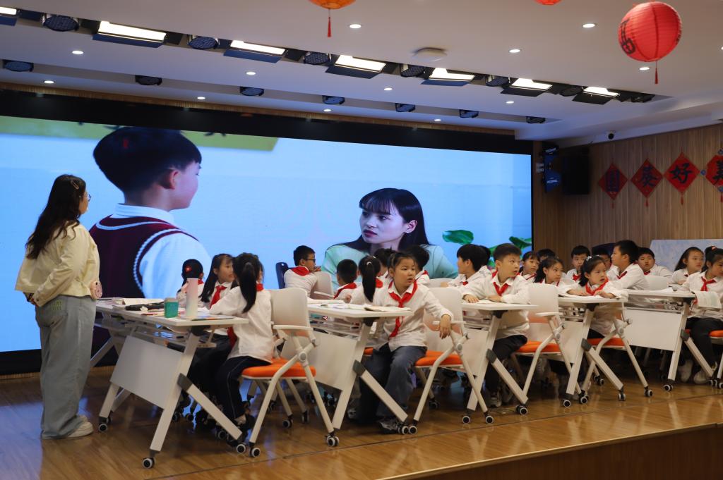 上午,学员们走进信阳市羊山新区第二小学。在校方引导下,大家依次参观了校园文化景观、功能教室与特色社团,切身感受这所学校在文化建设与课程实践中的“新质”跃升。随后,羊山新区第二小学青年骨干教师徐澜澜在美好演播厅呈现了一节精彩的语文课《秋天的雨》。她以细腻的语言和巧妙的教学设计,引领学生徜徉于秋意诗境,充分展现了学校“以学为中心”的课堂生态,赢得观摩教师的广泛好评。
