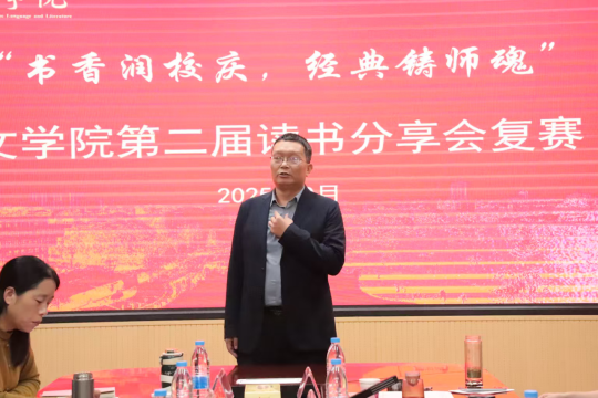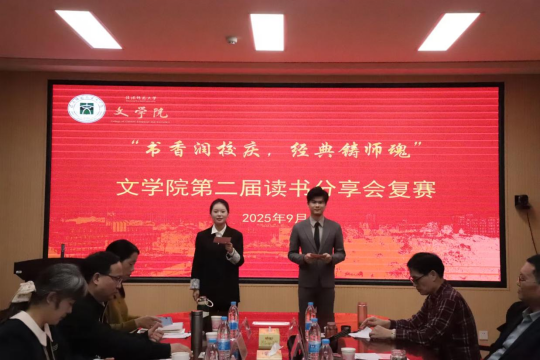 为营造良好的阅读氛围,拓宽思维视野,促进思想交流与碰撞,提升文院学子的人文素养与思辨能力。9月28日,必威betway东盟体育于人文楼会议室隆重举办第二届“书香润校庆,经典铸师魂”读书分享会复赛。本次活动特邀必威betway东盟体育副院长徐洪军、各教研室主任组成专业评审团,共同聆听经典回响,品评阅读感悟。赛事由尹怡凡、周诗文联袂主持,现场氛围庄重而热烈,尽显文院风华。