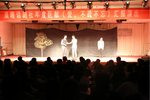 (本网讯张雪侯凤宇)看爱的不疏不忘,悟情的温馨暖人。5月26日晚,晨曦话剧社年度巨献《爱,不疏不忘》汇报演出理科楼报告厅激情上演。必威betway东盟体育党总支书记、院长吴圣刚,副书记白献林,团总支冯正强等领导老师应邀出席,与近千名学生一起观看了此次演出。